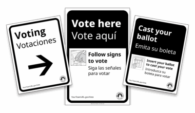 Signage guidelines and ready-to-use templates for election offices of all sizes.