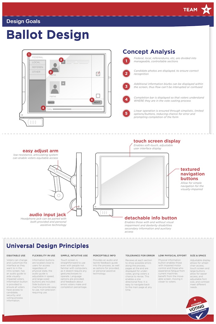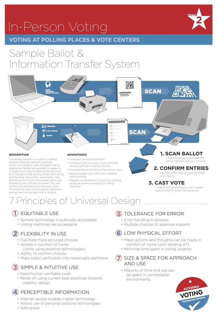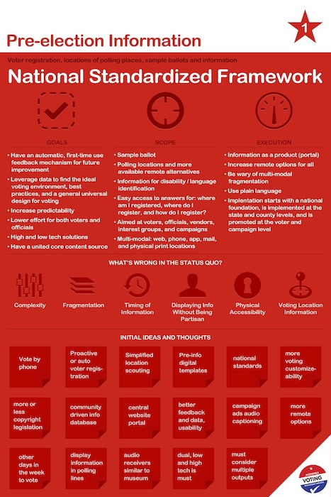 • Leverage data to find the ideal voting environment, best practices, and a general universal design for voting information.