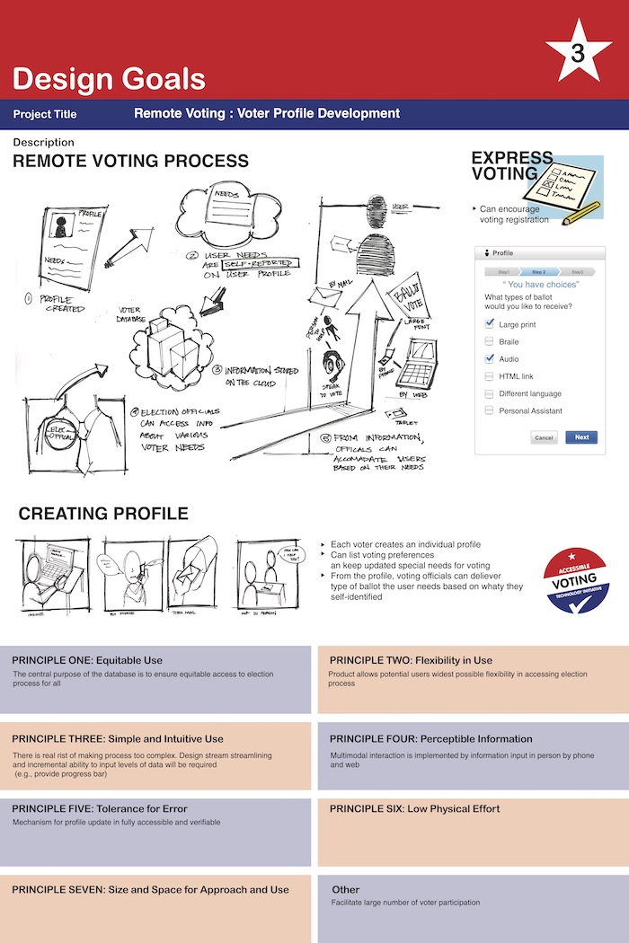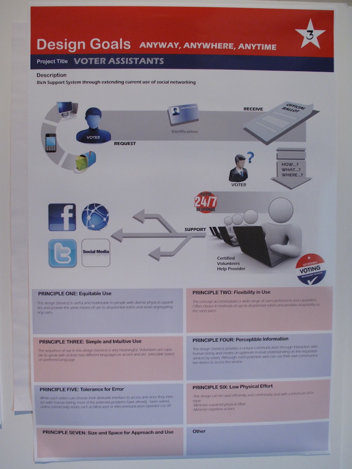 As one of the explorations of early ideas as part of the Accessible Voting Technology Initiative (AVTI),  the accessible voting workshops brought together many perspectives to  create new concepts for accessible elections to be developed further through AVTI grants.