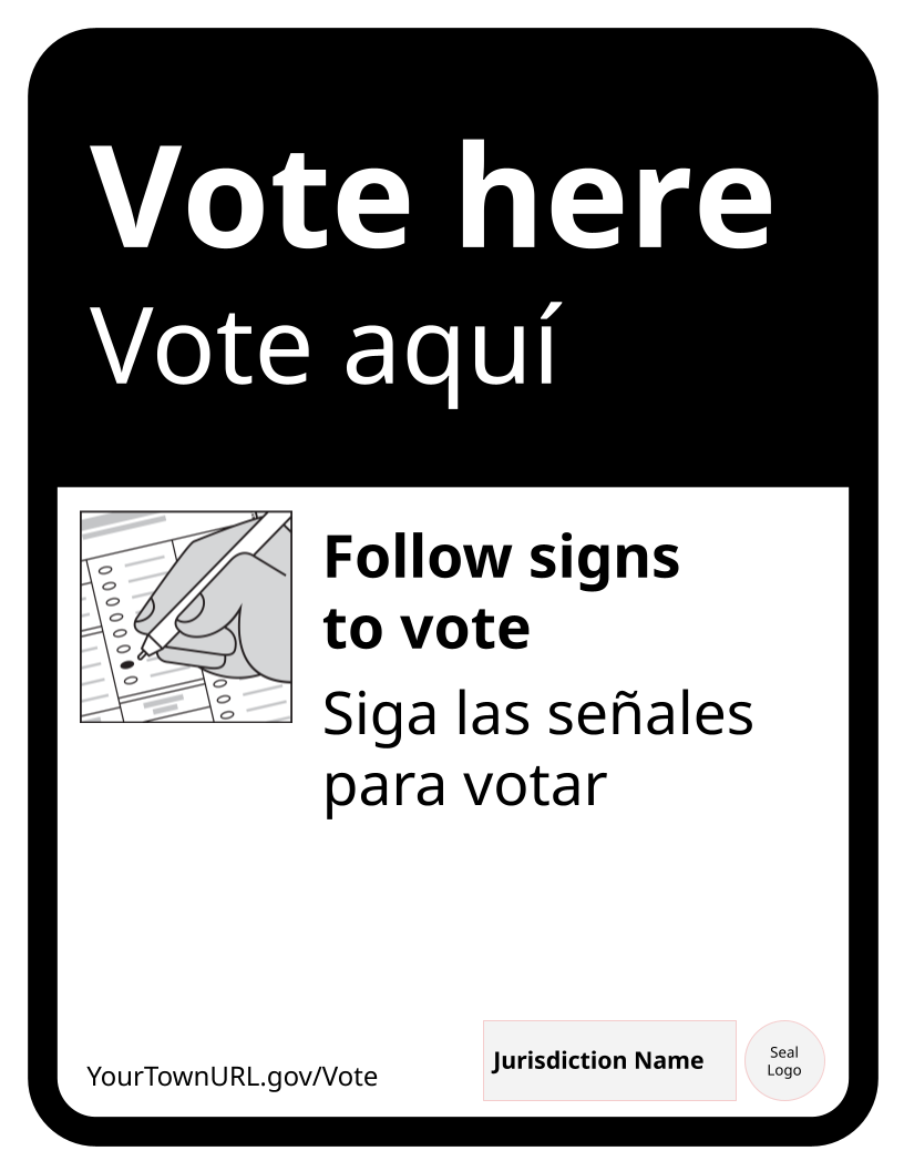 This toolkit provides research-backed guidelines and ready-to-use templates to help election offices create effective, bilingual signage.